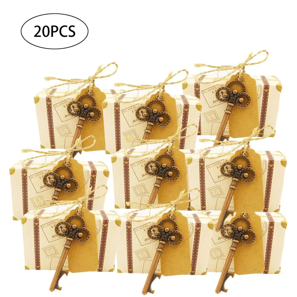 20 PCS Favors Suitcase Candy Box With Compass Bottle Opener Retro Wedding Souvenirs Candy Box Trave