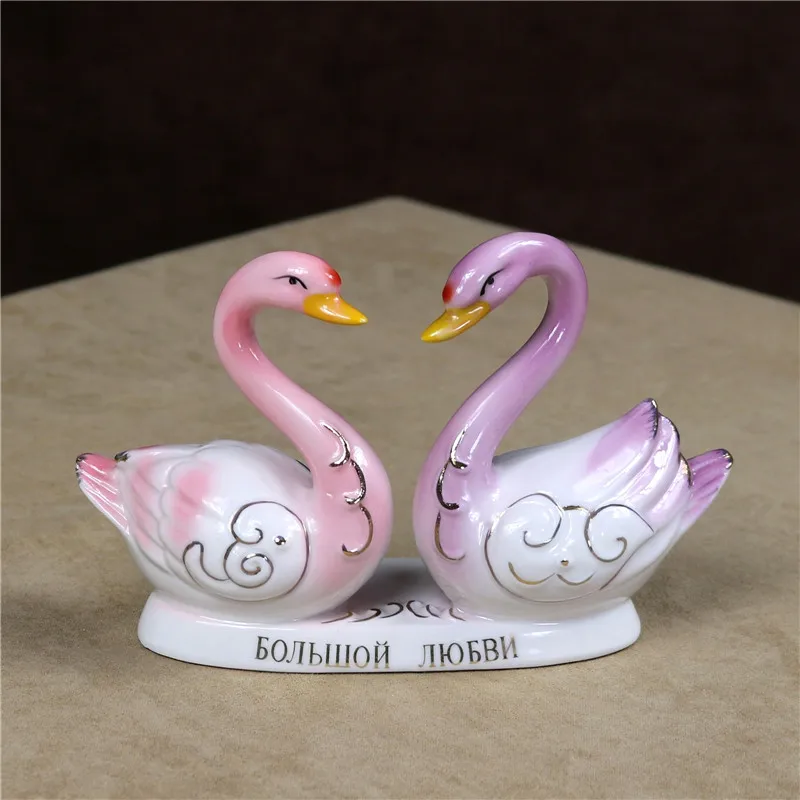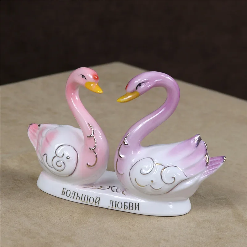Best Ceramic Swan Lovers Miniature Porcelain Couple Swan Figurine Adornment Decor Craft Wedding Present