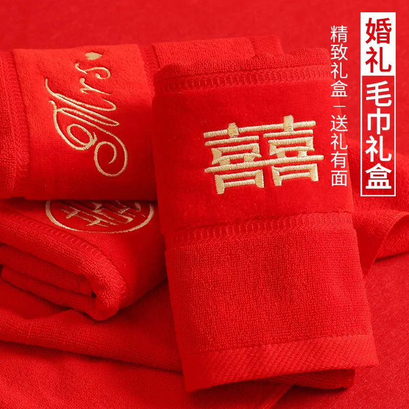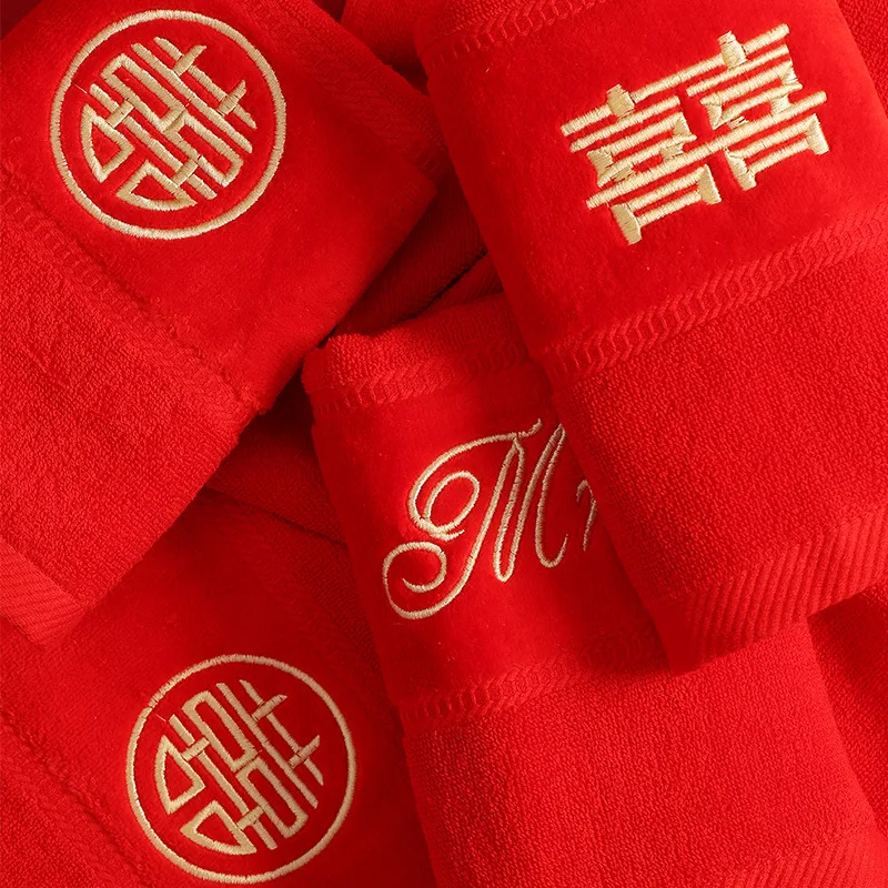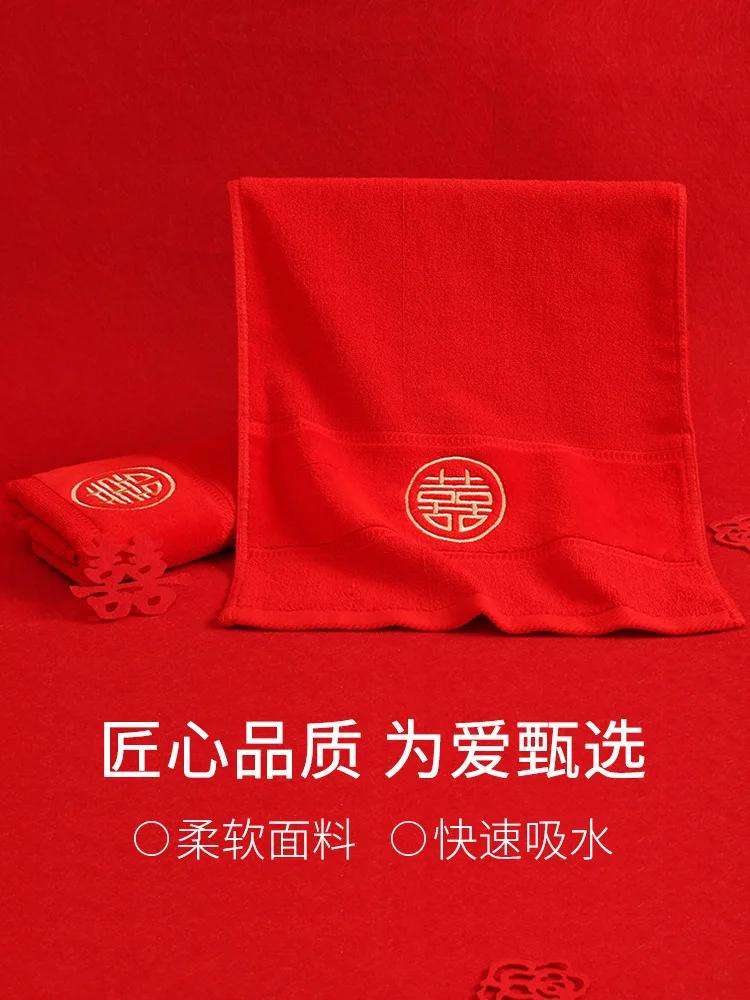 Marriage Supplies Pure Cotton Red Pair Festive Towel Zhejiang Province Red Face Towel Wedding Dowry