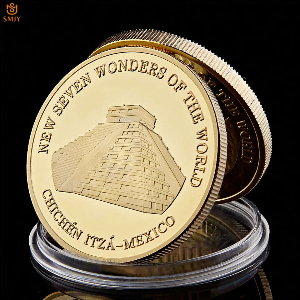 TOP 2007 New World Seven Wonders Chichen Itza-Mexico Famous Landmark Gold Plated Metal Souvenir Coin Va