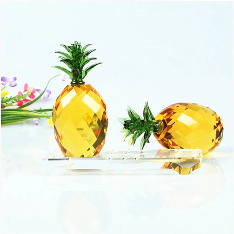 Hot Sale Crystal Crafts Yellow Pineapple Glass Paperweight Fengshui Figurine Quartz Ornaments Home Decoratio