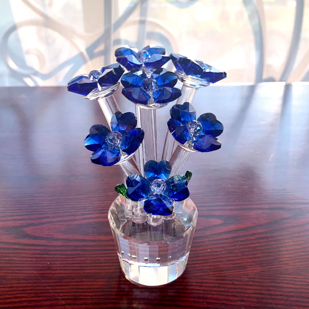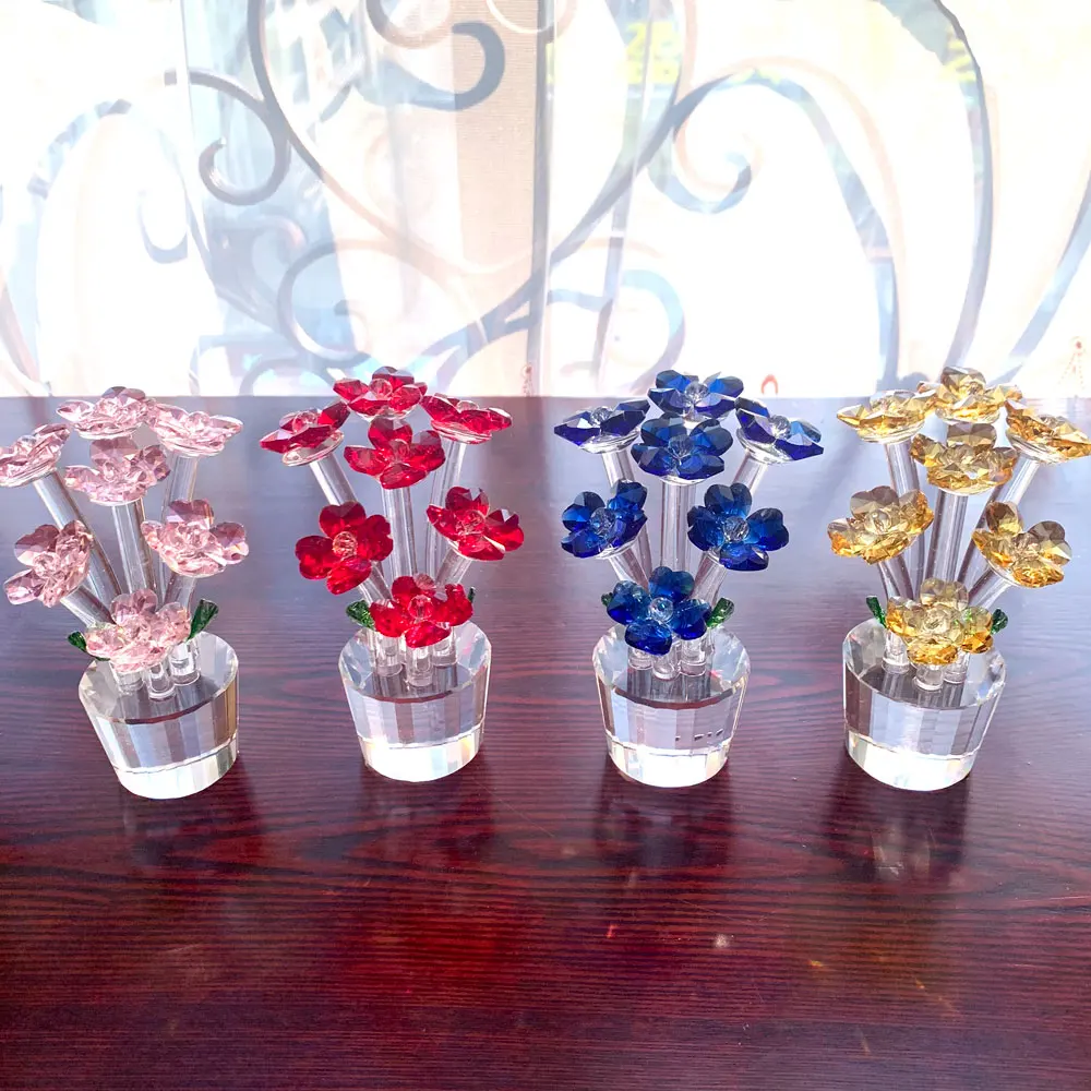 4 colors Beautiful Crystal Flower Tree Glass Fengshui Crafts Home Decor Wedding Decor Figurines Sou