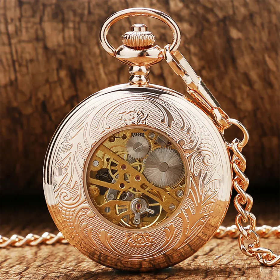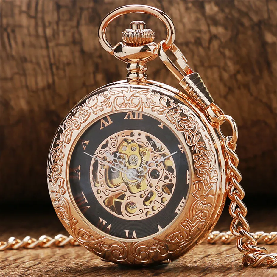 Best Quality Antique Rose Gold Transparent Glass Roman Numerals Mechanical Hand Wind Pocket Watch Souvenir Penda