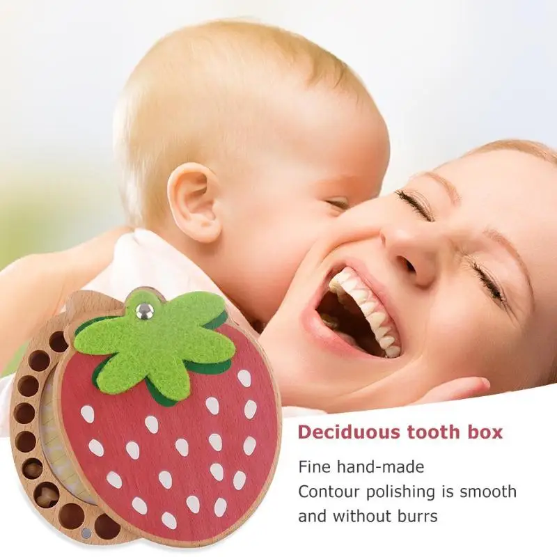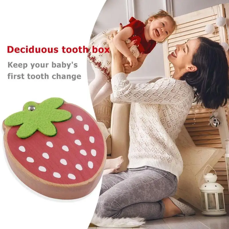 BEST QUALITY Baby Souvenirs Tooth Box Children Wood Teeth Box Organizer Baby Kids Strawberry Deciduous Teeth Sto