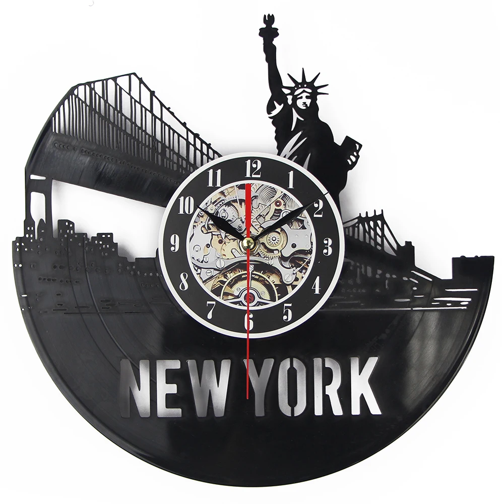 BEST SELLER 2019 New CD Vinyl Record LP Wall Clock Statue Of Liberty Souvenir Theme Wall Watch Modern City Art