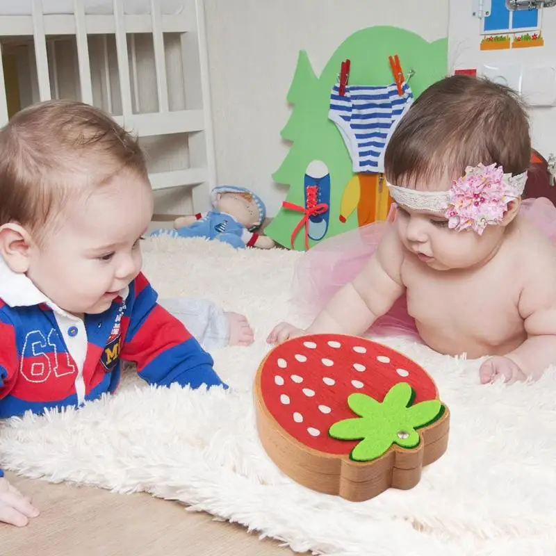 Strawberry Box Souvenir Tooth Collection Wooden Baby Deciduous Tooth Box Educational Toys For Child
